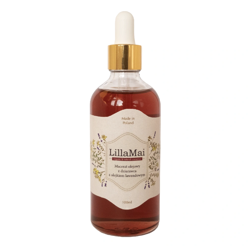 Poznaj moc roślin zamkniętą w oleju. Macerat z dziurawca z olejkiem lawendowym od LillaMai to połączenie ziół i naturalnych olejów, które działają kojąco, regenerująco i pielęgnująco. Powstaje w wyniku maceracji – procesie, w którym ziele dziurawca przez 3 tygodnie oddaje swoje cenne właściwości do oleju, tworząc skuteczny, naturalny kosmetyk do codziennego użytku.