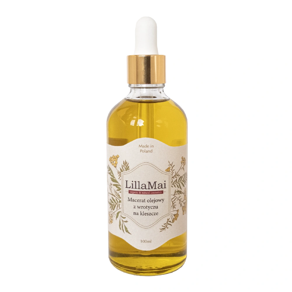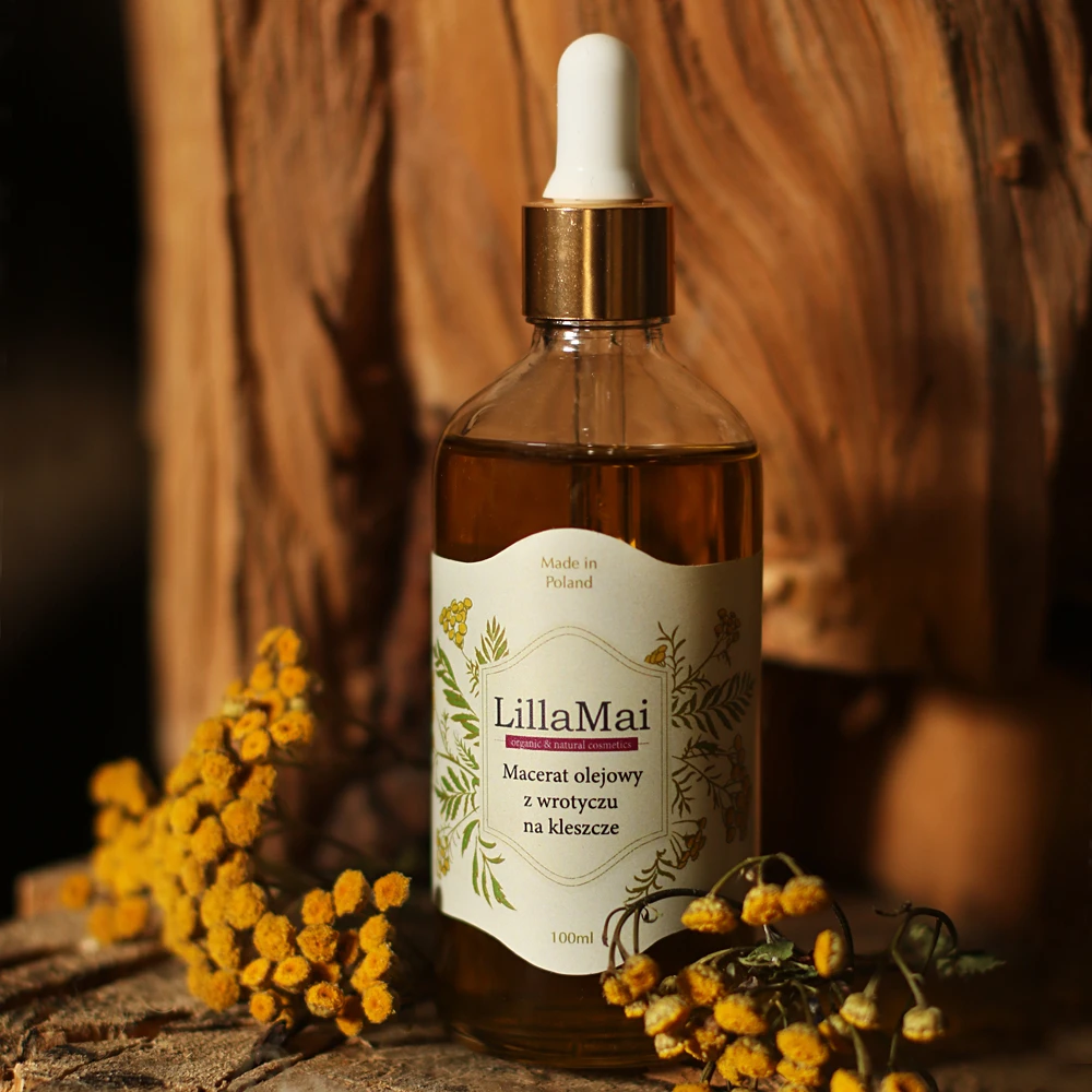 Macerat z wrotyczu – naturalna ochrona przed kleszczami. Nierafinowane oleje i ziele wrotyczu odstraszają pasożyty, pielęgnują skórę i włosy. Do stosowania dla ludzi i zwierząt. Ręcznie produkowany, 100% naturalny.