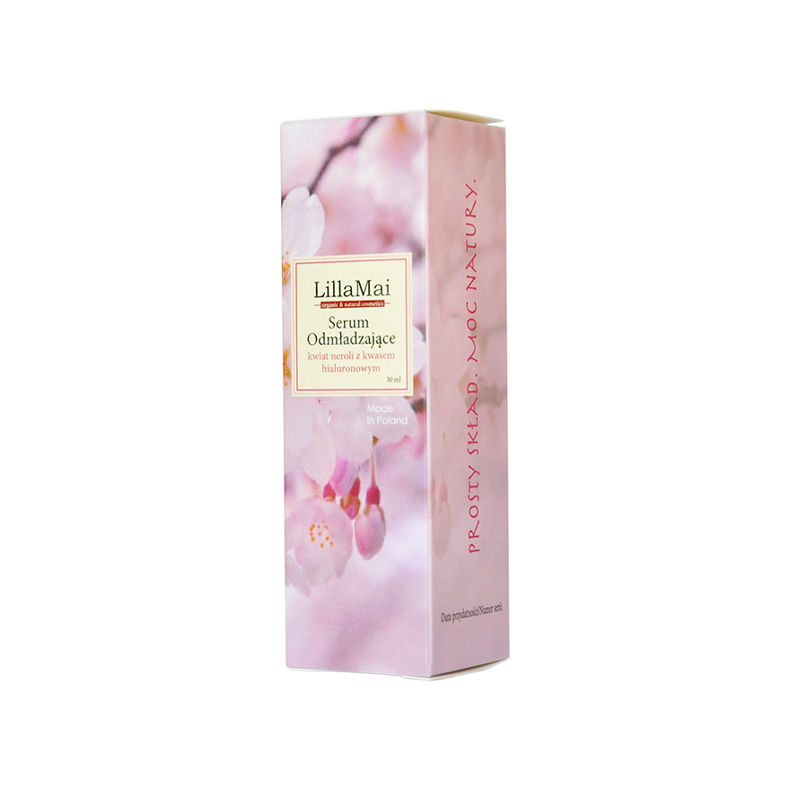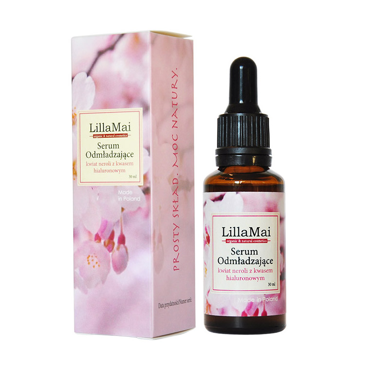 Naturalne, skuteczne wsparcie dla dojrzałej, wymagającej skóry. Serum odmładzające z kwiatem neroli i kwasem hialuronowym od LillaMai to kompozycja najwyższej jakości olejów roślinnych, hydrolatów oraz kwasów hialuronowych, które wygładzają, nawilżają i regenerują skórę, przywracając jej elastyczność i młodszy wygląd.